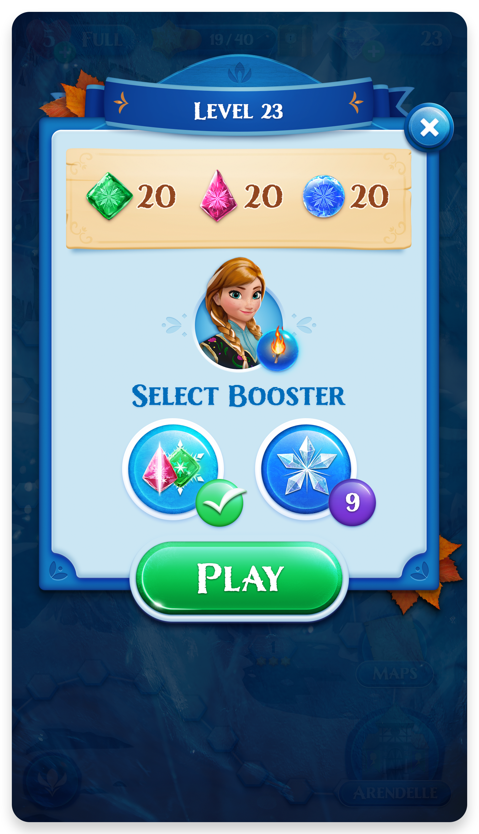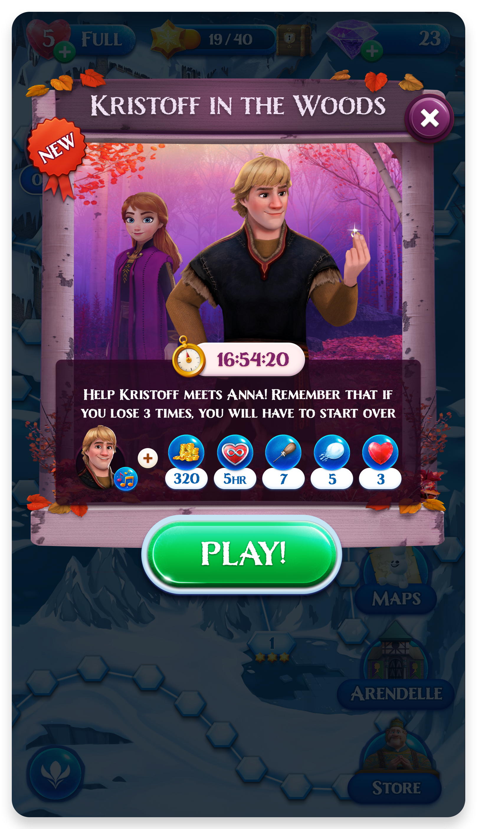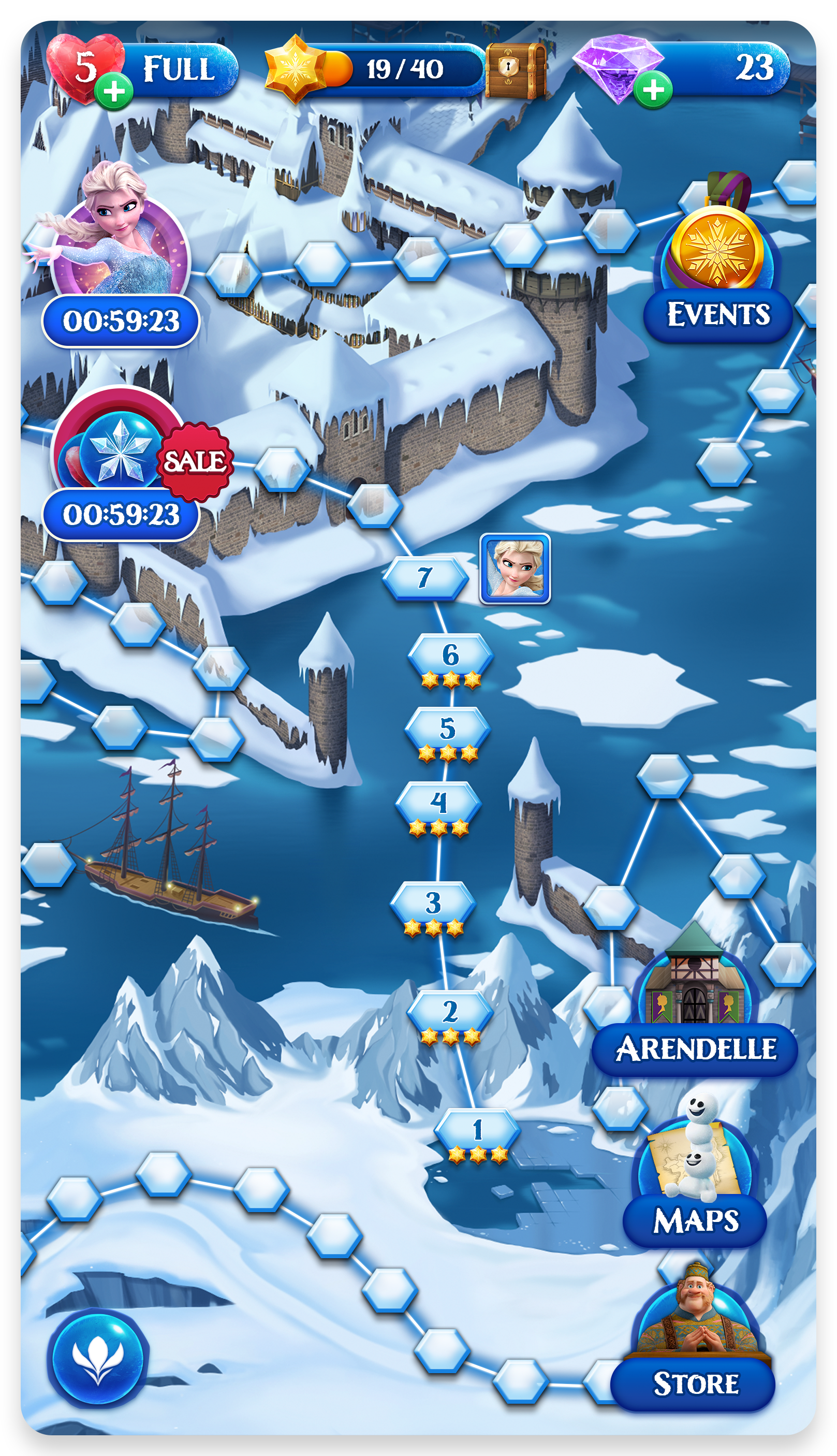 Every match you make helps towards restoring the kingdom of Arendelle. There are over 1,000 levels included of the classic match three style infused with a Frozen theme.