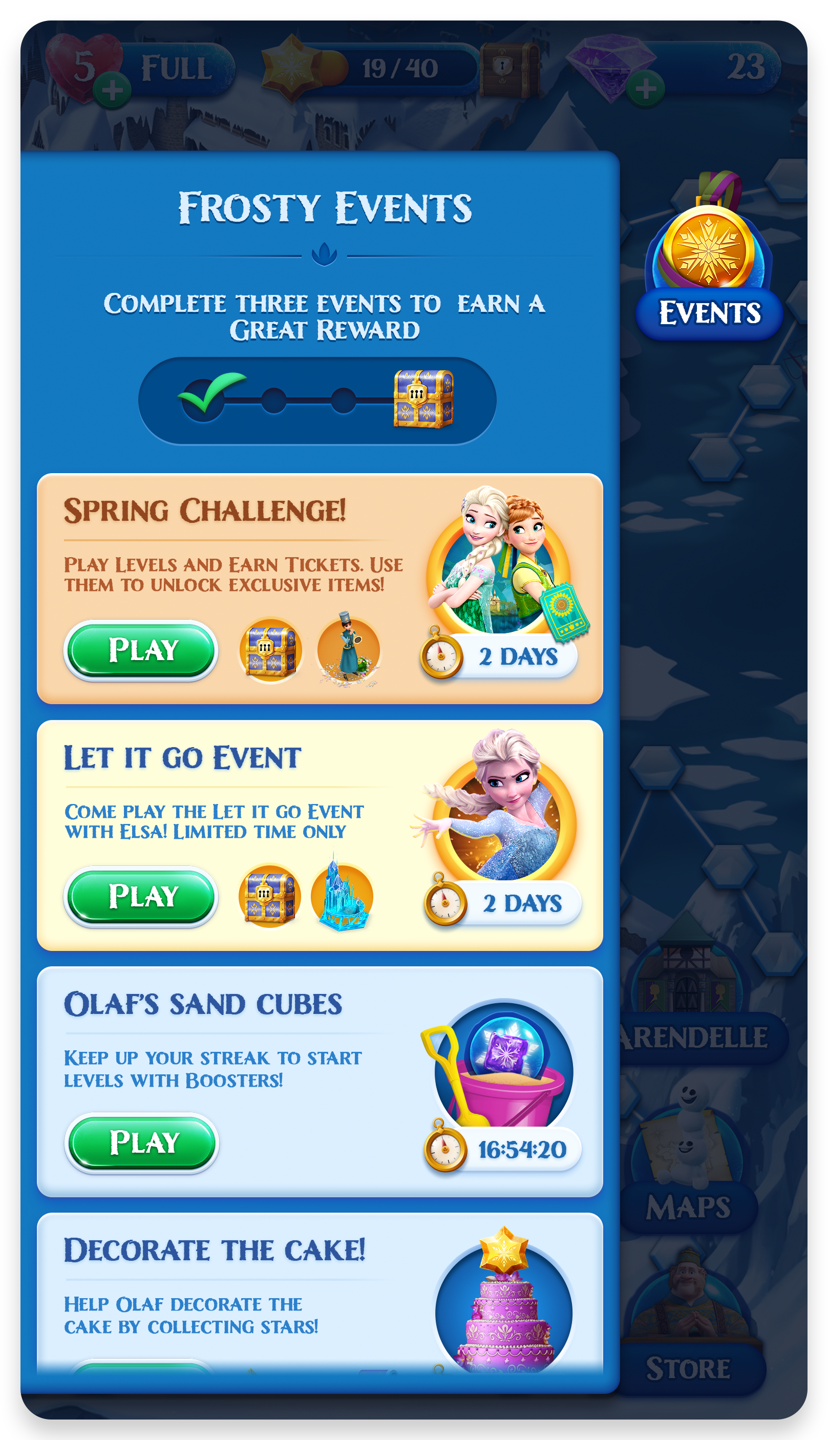 We designed a lot of events for the game with different setups and special thematization according to the Frozen movie plots.