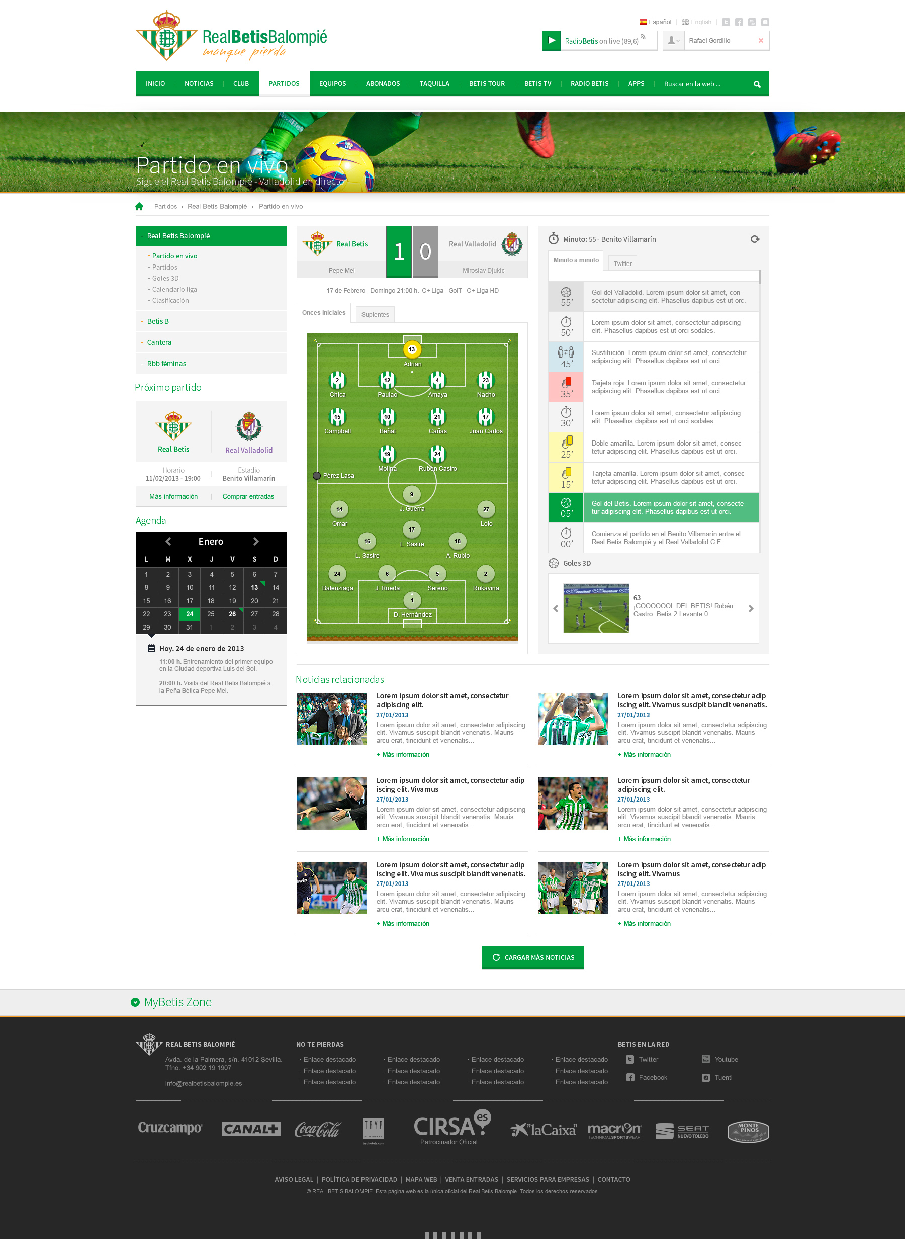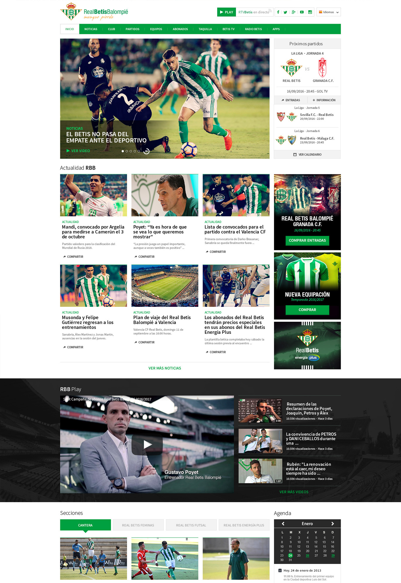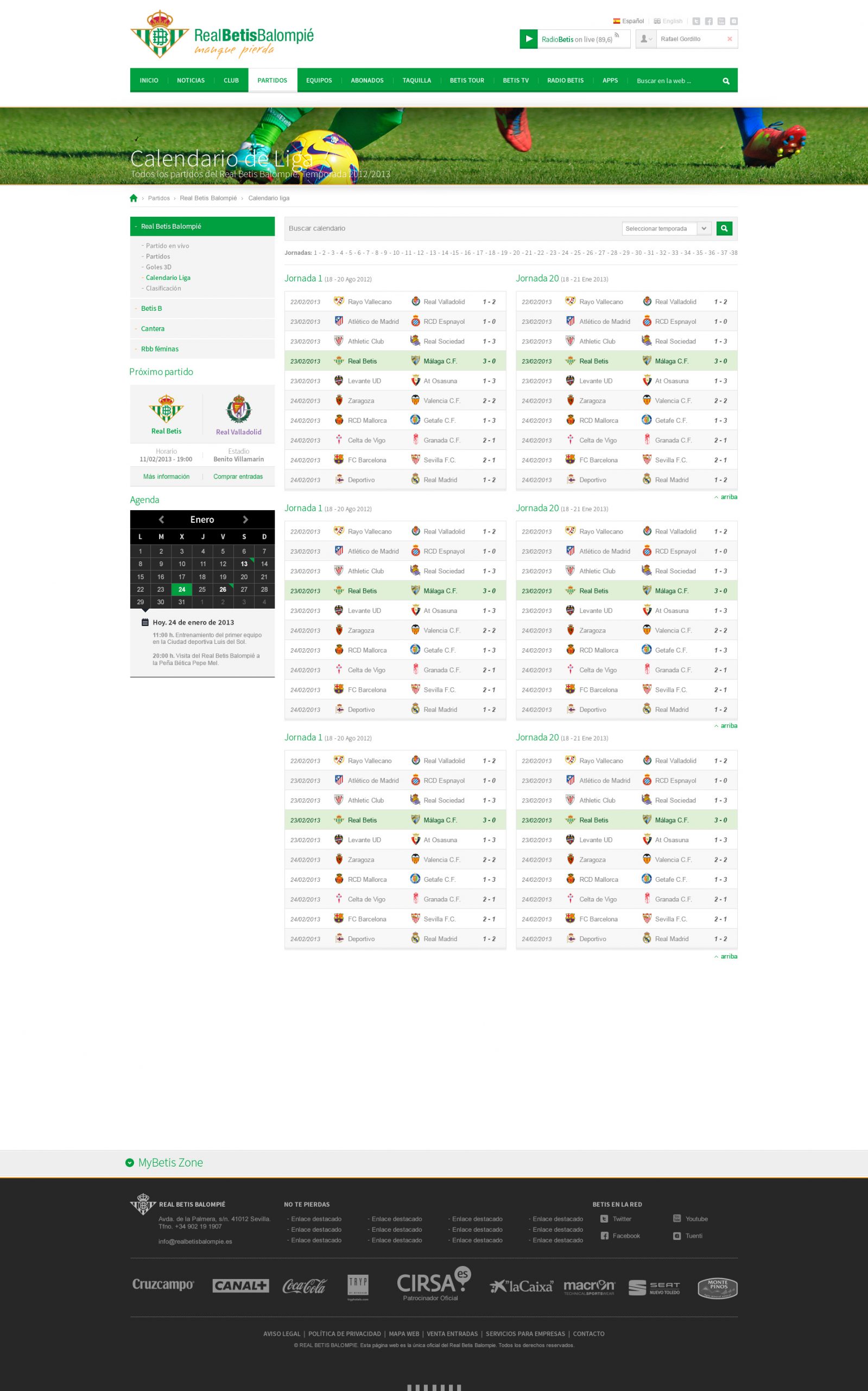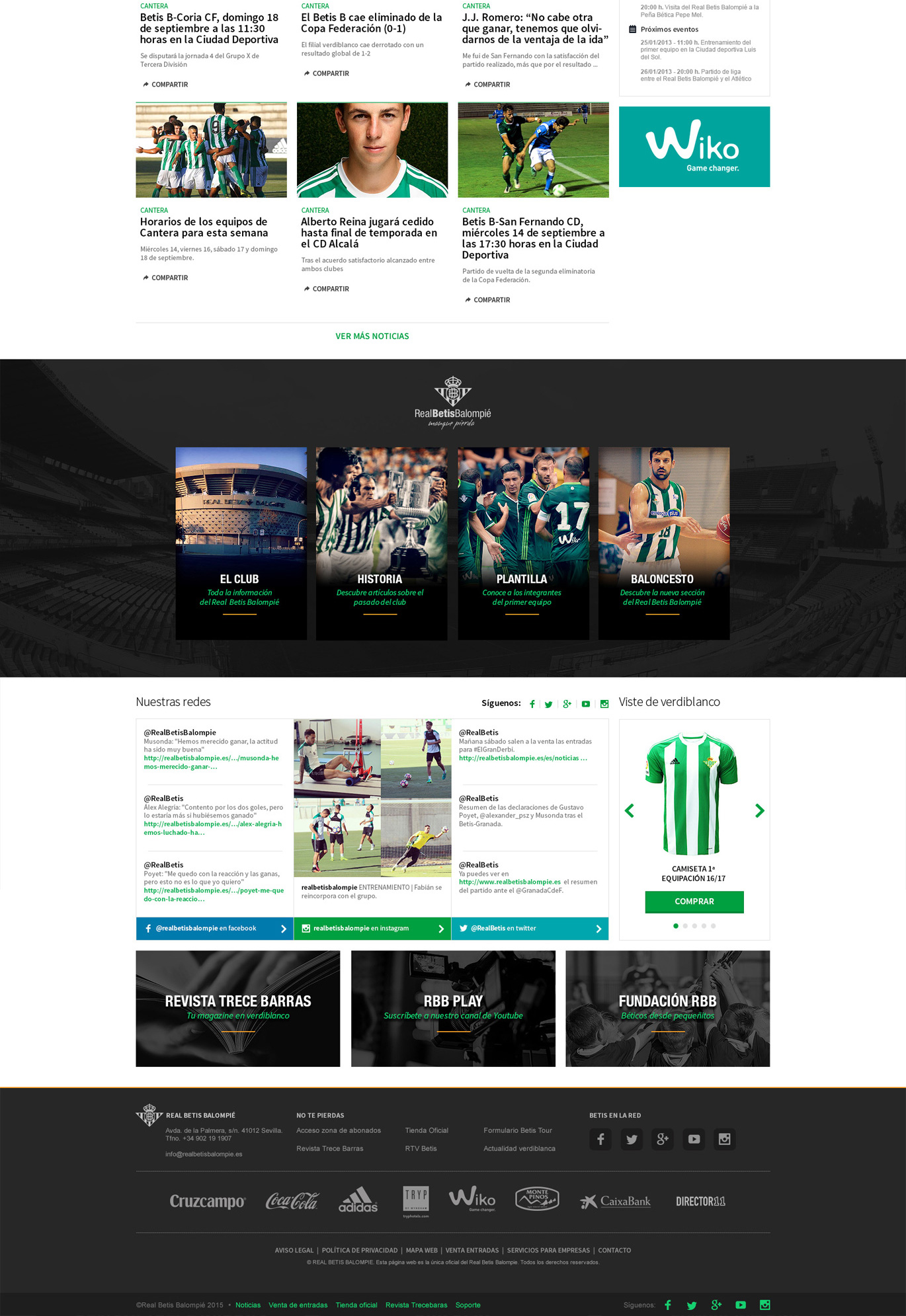 In 2013, I designed a new website for Real Betis Balompié. We created a lot of sections with a consistent UI throughout the website. I created, as well, all the html + css for the entire project.